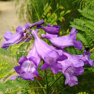 薄紫色のジャカランダ💜🤍🌿 爽やかな葉🌿🌿🌿も魅力的💕 ノウゼンガズラ科の高木🌿🌿🌿 アフリカ原産 熱帯アメリカに50種もあるようです✨💖😊 熱帯、亜熱帯地方の都市に街路樹として植えられ薄紫色の花をたくさん咲いて見事でしょうね💜🤍🌿💖🤗 調べてみました。 世界三大花木のジャカランダですが💜🌿他の二種類には、 火炎木カエンボク❤️🌿 ノウゼンガズラ科の常緑高木。こちらは赤い花❤️を多数つけます。 南アフリカ原産で熱帯、亜熱帯の各地で街路樹、庭園樹として栽培されています。 鳳凰木ホウオウボク❤️🧡 マメ科の落葉高木 火炎樹カエンジュとも呼ばれている。花の色は火🔥のような緋紅色 マダガスカル原産で熱帯地方の街路樹等に用いられる。 熱帯では一年中開花がみられる。 🏷青い夏の花マニア 🏷青い花とその葉を写そう!2022 🏷幸せの青い花 🏷ウキウキわくわく♪ 🏷夏色ブルー