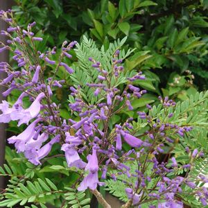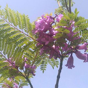 ジャカランダ ブルーブロッサムビューイング 矮性品種です あまり大きくならず早い内から花が楽しめる品種です😊 埼玉県の我が家でも冬季は玄関にしまい込めば🆗です 静岡県の熱海ではジャカランダが街路樹に植えてあって開花時期はブルーで素敵です 宮崎県も有名かな❗ 品種で日南の恵みというのもあるみたいですね😊