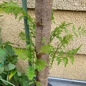 ジャカランダ、ここまで成長しました😄 昨年はお花を咲かせてくれたのに😂💜 高枝は枯れ、下から出て来た葉っぱがふさふさして来ましたよ😁🌿🌿🌿 来年はお花が見られるかなぁー⁉️