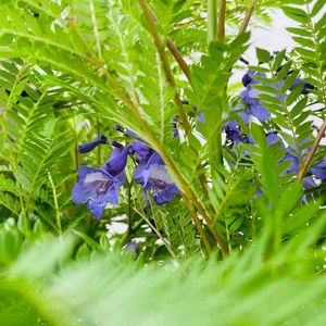 世界三大花木の一つ、ジャカランダ💙💜✨ お花屋さんで苗を見ていたら、一つの鉢に「世界三大花木のひとつとされるジャカランダの木につぼみがつきました」の札が。 見上げると、空に向かって伸びた木の先に青紫色の花が咲き、美しく広がった葉は涼しげに梅雨空に広がっていました。 思いがけず出会ったジャカランダ💙💜 いつも素敵なpicを見せて下さるフォロワーの皆様に感謝の気持ちを込めて200pic目を投稿します😌💕これからもよろしくお願いします(*^^*)💖 【ジャカランダ】 ノウゼンカズラ科の落葉低木、または高木で、熱帯アメリカに約 50種程知られている。花言葉は「名誉」「栄光」 【世界三大花木】 ジャカランダ(紫雲木・シウンボク) フランボヤン(鳳凰木・ホウオウボク) スパトデア( 火焔木・カエンボク)