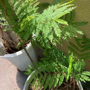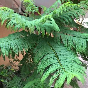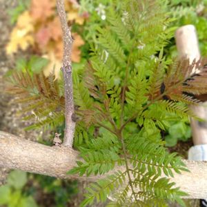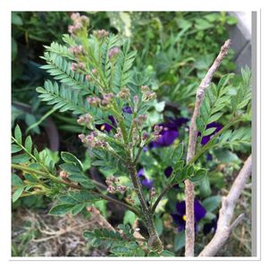 2年目のジャカランダ🌿 背丈はまだ1mもいかないけど、茎の部分?がしっかりした枝になって、葉もワサワサ生えてきて急成長✨ 冬場ただの一本の棒状態だったのが嘘のよう🤯 去年は9月に花が1房咲いたから今年も期待してる🤗 …でもどうかな??