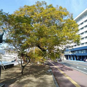 散歩: 小浜、ジャカランダ通り 家のジャカランダは葉の色が茶色くなり落ちはじめているのに ここで見たジャカランダはとても綺麗な緑でした。