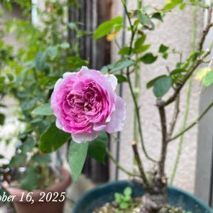 10月8日(水) こんにちは♪ 朝の薔薇🌹ちゃん 🌹サーカスナイト ベルベットみたいな花びら、ゴージャス✨ 🌹シャドウオブザムーン 藤色の房咲きなんですが一輪のみです💦 🌹リラ 横からと正面から 意外と可愛く咲いてくれました💕 🪻先日お迎えしたラベンダー 鉢に植え替えました 四日ぶりに見回り、シャルールの開いた所見る事できず花びら散ってました😢 まだまだ、昼間は、30°C越えで日差しもきつい、いつになったら過ごしやすくなるのかな💦