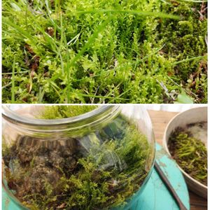 苔💛 うちから2.3分の所にゆるやかな坂道があり、 その近くのゴミステーションの周りに花を植えられていて、 車で通りすがりにしか見かけるだけなので、 昨日は、身近にどんなお花かと見に行きましたら、 坂道の斜面に生えているこの苔に出会いました(笑) 青々と透明感のあるすがすがしい姿がなんとも素敵💜💜💜 今回も苔テラリウムなるものをしてみました(笑)💛 AIに聞きましたら、コツボゴケ、ハリガネゴケ、ササオカゴケとでました💛