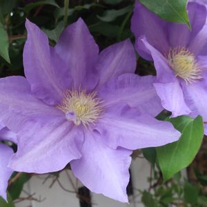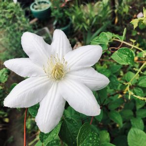 玄関前で鉢植えのクレマチス 籠口(ロウグチ) 可愛い篭の様な形です、和名はテッセン(鉄線)