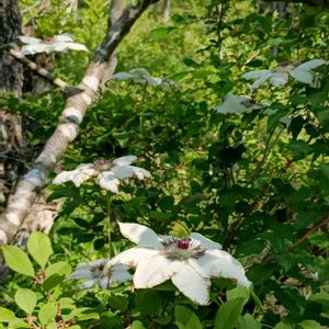 カザグルマ(風車) キンポウゲ科センニンソウ属の 落葉つる性低木 花弁はなく、花弁のように見えるものは、萼片だそうです。 花の見頃は、少し、過ぎていましたが、 盛んに咲いているカザグルマの花、 萼片が落ちて、残った花柱、 落ちる前なのか🤔?、萼片が反り返ったユニークな花姿…が見られました。 園芸種のクレマチスは、 自生のカザグルマなどから交配によって作出されたものだそうです。 そんなことを知ると、余計、 カザグルマを見る目が違ってきます😆