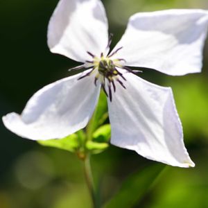 「みどりのまとめ」から シロバナハンショウヅル (白花半鐘蔓) ・野生 ・白い花びらに見えるのは 萼片で下向きに咲く ・石灰岩地を好む ・本州(近畿地方南部-関東地方南部)・四国・九州 に分布 2025.5.1