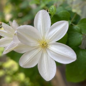 今年のクレマチスはどれも今までになく元気です 白雪姫が咲き進んでいます (写真は少し前のもの) この白さが大好き💕