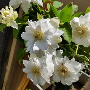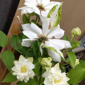 白のクレマチス、次々と咲いて💚🤍💚🤍花びらに、もようが🎶🎶