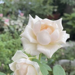🩵今日の推し華…一ヶ月ぶりに ピンクベージュの薔薇🌹が 文句なしのお美しい姿で開花☆*:.。. o(≧▽≦)o .。.:*☆🍷🌹🍷 凛としたロミオとジュリエット…を演じる… はたまた…国定忠治 赤城の山も今宵限り…大親分と演じるのか…カッコええね😎 At the end of summer... good memories🍷
