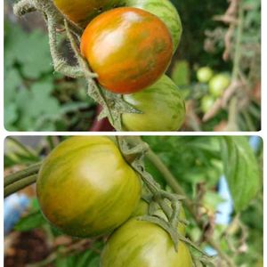 『ミニトマト』ゼブラ お待たせ~~~✌️ ゼブラちゃんを初収穫‼️ 切ってみた✌️ 外は赤が強いけれど 中身は緑が強いかな⁉️ 食べてみた👍 普通のミニトマトよりも 酸味が少ない感じかな⁉️ イチゴの味はしなかった(笑) 当たり前ですがトマト🍅の 味でした‼️ 酸味が苦手な人には良いのかも 知れませんね‼️(o^∀^o) 以上 食レポはおしまい(*≧∀≦) これから沢山はできませんが 楽しみたいです🍅