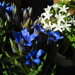 🌸リンドウ🌸 昨日までの雨の時は 咲きそうも無かったけど 今日晴れたら💠💠咲いてきました! 先住人の白いペンタスと 引き立て合ってるね😚 これ、普通にリンドウとしていいのかな? 違ってたら教えてくださいね!