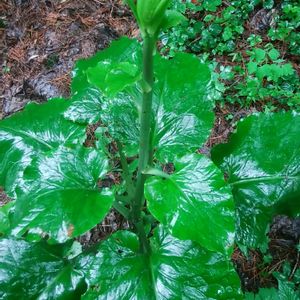 雨の散歩中に☔ 1 鮮やかな緑と大きなつぼみ💓 名前はわからないけど・・・😥 群生してたので、 咲いた頃、また来て見たいのですが🐌✨