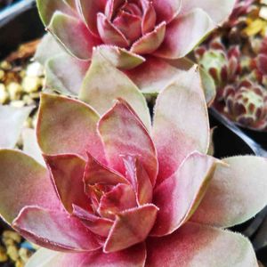まだ美しさを保ってた センペルビウム・ゼノビアさん😻💗❤️🤍💚 雨晒しですが 風が強い地域なので乾燥気味に育てられ 助かってます😸💖