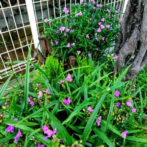 買い物帰り、スーパーの花壇に、 オオムラサキツユクサが 咲いていました。