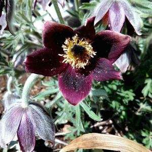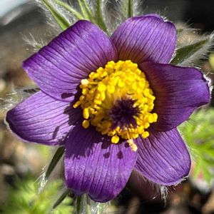 紫色の翁草咲きましたー 花びら開き過ぎです💜 朝はまだ閉じていたのに、12時には、こんなに開いて 反り返ってしまってどうするの⁉️おじいちゃん‼️