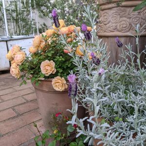 おはようございます☀️ 今日はかなり暑くなりそうですね🥵 熱中症に気をつけて過ごしましょうね🍉👒 ①ミニ薔薇 モカ🧡🤎 急に開花がすすみました🥰 ②八重咲きペチュニア パニエレモン🍋 どんどん垂れ下がっで咲いていきます。思いきってカットしないと✂😓 シルバーリーフのラベンダー🪻が咲いてきました🌿 ③今年は紫陽花 ダンスパーティーが花付きが良いです💜🩷去年、剪定を夏にしていまって咲かなかったからかな?😙 ④アガスターシェ ボレロ咲いてきました🩷 ⑤アガパンサス、向かい側に植えていた子が根が地面に見える程混み合ってしまって結局全部抜く事になりましたが、チビ株から蕾が上がってきてくれました🌱 お花も葉も小さいタイプに植え替えたいところですが…😅