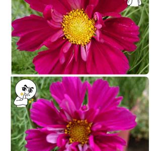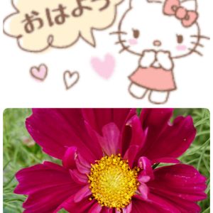 『コスモス』 久しぶりに今朝は☀️ 外に出ておもいっきり 大きな深呼吸‼️ 肌寒いけれど気持ち良い✌️ 濃いピンクのコスモスが 空に向かって咲いていました‼️ コスモスも大きく 深呼吸している見たいです✌️ 今日も元気に 頑張りましょうね‼️💪
