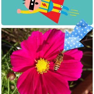 『コスモス』 いきなりやってきた(>_<) 野菜の受粉をお手伝いしなさいよ‼️ 花の密泥棒😅