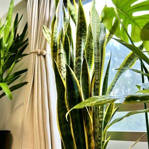 ウチの空気清浄機😊サンセベリアローレンチーさん😊 サンスベリアの仲間は、マイナスイオンを放出する量が多いため、空気清浄能力があると言われています