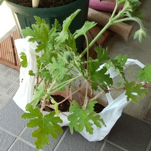 ベランダ前の土のところに、ハーブゼラニウムを地植えしました。 良い香りでつい触ってしまいます😅 虫除け効果にも期待‼️
