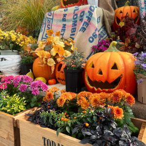 🎃Happy Halloween🎃 ようやく秋らしくなってきました🌰🍂 北山通りにハロウィンの素敵な飾り付けを見つけました🎶 3枚目は全体像を… 🎃👻 🌼🌿🌶️🎃 お花合わせがすごく参考になります🌟 キャベツボックスに入ったジニア、マム、観賞用トウガラシ、チェッカーベリー、カラーリーフ等 飾りのジュートクロスもポイントで可愛いなぁ〜😍 数年前、お店で見つけたのに最近見かけません…出会った時に買わなきゃですね💦