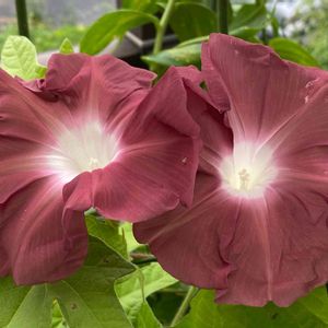 朝顔(団十郎) 春に種まきをして、一番乗りで咲きました。 行燈作りにしています。