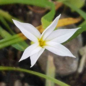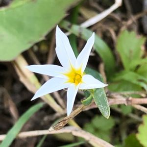 散歩道で、真っ白なニワゼキショウを見つけました。花弁が細く先が尖り、中心部が黄色、これが、セッカニワゼキショウ( 雪花庭石菖 )かしら・・初めて見ました🌿