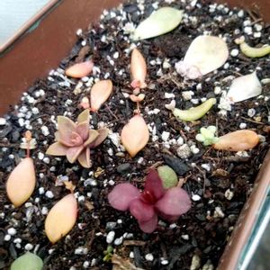『葉挿し』 外で放置状態😁 意外とすぐに芽生えするけど、葉が枯れたら鉢を移します❗ でも大きくならないんだよな😅