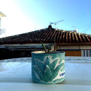 リメ缶にアガベの赤ちゃん! 元気に育ってね〜(*´꒳`*) 朝の涼しいうちに、植え替えとかしたいけど… 写真撮って遊んでたら、ギラギラ太陽がぁぁぁ
