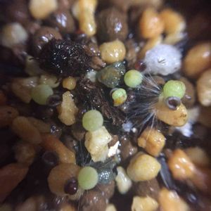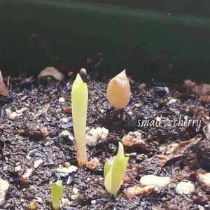 ムスクラさんがまたチマッとお花を咲かせていました!(๑˃̵ᴗ˂̵)昨日も一昨日も帰って来た時には閉じていたから開いてるのが見れて嬉しい!今日で最後かな🌼待っててくれてありがとね☺️ポンポン持ってるみたいで可愛い💕 左はノビージョの実生。 やったあ!発芽した〜!お気に入りだから絶対枯らしたくない! 自家受粉なのかカルメナエと交配なのか不明😃