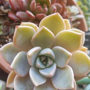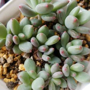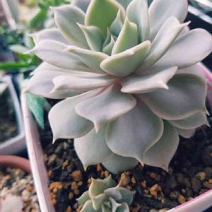 +3.1/+9℃☁~☔~☀️ おはようございます😊 オパリナの葉挿しっ子。 先端のピンクが濃くなって来た~ 植え替えた方が綺麗な株に育ちそうだよね😉