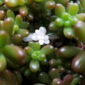 -1.1/+18.0℃☀️ こんにちは😊 リプサリスの水挿し発根待ちになんとなく一緒入れてた花芽。 発根そしてベビちゃんが出ました! 誰だったのか思い出しました~ ハムシーです。 1株しかないからラッキー💕