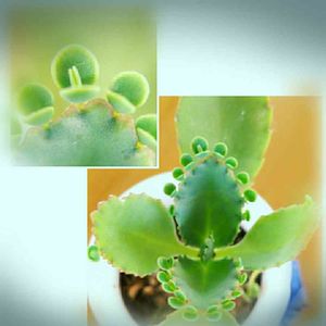 クローンコエ いつの間にか 小さなベビーが生まれてた 器を大きくしてあげよう 植え替えの前にパチリ マクロレンズで覗くとベビーの中に更に小さなベビー🌱🌱🌱