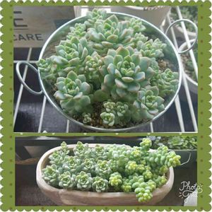 +14.3/+20.9℃☁ おはようございます😊 目指せプロリフェラ丼☝ 1号2号モリモリっとしてきました😆 下のプロリフェラは葉挿しっ子なので成長が一緒なので見栄えもいいね💕 右下の天使の雫かと思っていたらそれは1部でビアホップでした😅