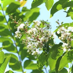 サルスベリ 中国原産で別名「百日紅」と言います🤠 樹皮がツルツルで猿🐒でも滑ってしまうことから名が付いたそうです🤗 しかし、実際は簡単に登ってしまうそうです🙃 #花木#百日紅#白花