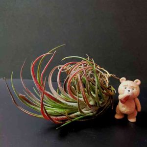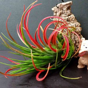 我が家のチラのイケメン枠( ̄∇ ̄) Tillandsia pruinosa x scaposaさん 赤のメッシュが格好良すぎます😂 ミスティングすると更に真っ赤に見えて凄いです。 結構大きくなりましたが、そういえばこの子の開花サイズってどの位何でしょう(´д`)?