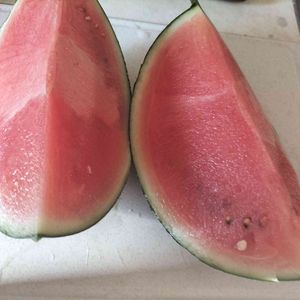 畑で採れた【すいか🍉】をいただいた💕💕💕 やったー🙌大好きです😍 果物の中で一番好きです🍉 タキイ交配の【小玉すいか🍉カメハメハ】との事🏝🏝🏝 ラグビーボール🏉的な形。 ハッキリしない縞模様が特徴? 濃いめのグリーンでモヤモヤ柄🦓 ザクっとな🗡皮カタっ!! 食べやすく一口大にザクザク🔺🎶🔺🎶🔺🎶🔺🎶🔺🎶 しかし赤すぎるぞ果肉🍉🤣 いただきまーーーす😋😋😋 目が合っちまいました👀‼️ カメハメハ大王👑出てきたーーーーー🫣🫣🫣🫣🫣