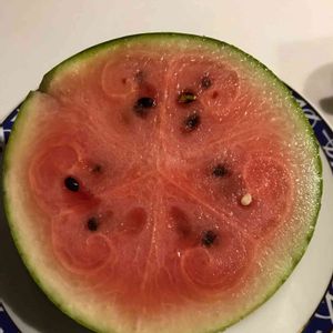 小玉スイカ。 突然ヒビが入ったので、収穫しました。 維管束が、大魔神みたい(o^^o) 色は今ひとつだけど、 もう甘くてにっこりでした。