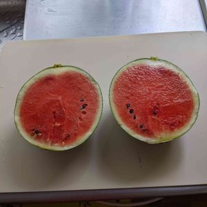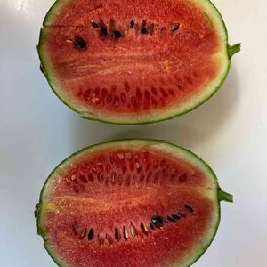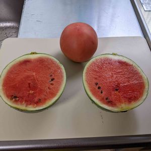 小玉スイカ『ひとりじめ』の収穫が始まりました🤗🍉 右下は早々に採ってしまった未熟果です。種が白くて皮も厚め、味はまぁまぁといった感じ。一番大きくて音も良い気がしたのですが…。収穫の判別は本当に難しいですね😭 今日のスイカは収穫日を決めておいたもの。こちらはとても甘くて感動しました✨ スイカ栽培は初めてでしたが、こんなに美味しい実が採れるなんて😊🎶 私の畑はカラカラに乾く砂地。この畑のありがたさを痛感しています。