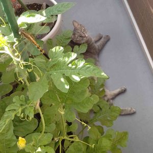 トンボにゃ‼️ ベランダに 洗濯物を取り込みに出たら あんちゃんも付いて出ました。暑かろうに🥵 スイカの苗でトンボも一休み😆あんちゃんは 箱入りだから 見てるだけ~🤣 帰るよ〰️💦
