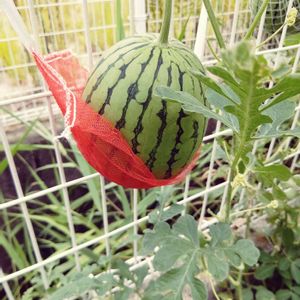 我が家の家庭菜園 小玉スイカ 愛娘さくら🍉 小玉スイカは愛娘さくらとサマーオレンジの2苗植えましたが、サマーオレンジはアブラムシ&マルカメムシの大群によって枯れてしまいました😱 でも、愛娘さくらは元気にすくすくと成長中🍉 玉ねぎネットではもう落っこちそうなので、何か別のネットで支えます😅 収穫が楽しみです🍉☀️