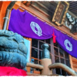 周囲は 今朝の花たち 中央 正倉院THESHOW! 螺鈿紫檀五絃琵琶 🎻
