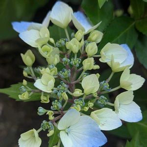 ①② 紫陽花ラグランジアクリスタルヴェール2が色付いて来ました🩵🩵 ③ カワラナデシコ 種蒔きより 今朝はこんなに沢山咲いています 💜🤍🩷❤️ ④ ラズベリー 花が咲き始めました🌿🤍🤍🤍