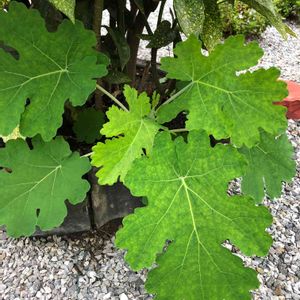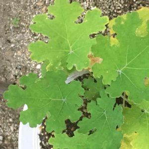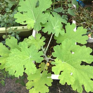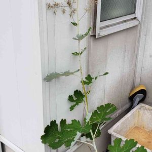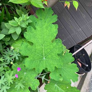 植えた覚えのない植物🤔子供の手のひらほどの大きさの葉です。 名前がお分かりの方よろしくお願いします。