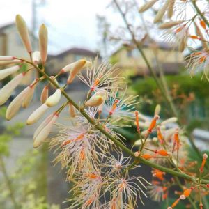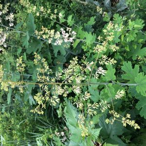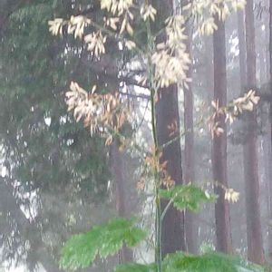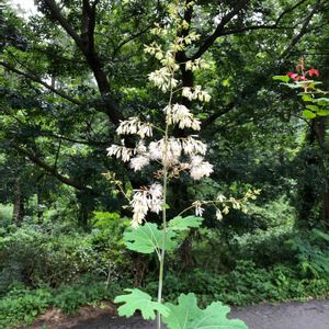 春から夏にかけて ぐんぐん力強く成長し 背丈は2メートルにも なってしまう厄介者の タケニグサ 爽やかな花は 雄しべが長く まるで綿毛のような美しさ 花が終わると扁平な実が 揺れて鳴る様子が 竹藪の音にいているから タケニグサと 呼ばれたらしい… 草刈りされず 残れたら 音を聞いてみようかな…😊