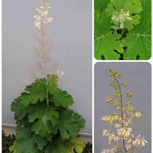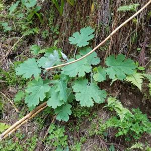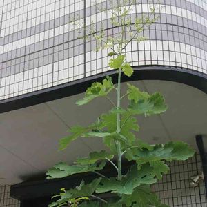 おはようございます🎵 これ、邪魔なところに根を張ってしまって、伐採寸前の姫なんですが…… タケニグサと教えて戴きました。 ありがとうございます🎵 左の写真の背丈は120センチくらい、右上のは隣に根を張ってた少し小さな個体です。 まだ花を咲かす前でしたので残念ですが…せめて写真だけでもと📷 こんな出で立ちでも雑草です。 葉っぱ、ドデカイです💨💨 根元は3センチくらいの直径で、中が空洞でした。 中が空洞な故、「竹似草」タケニグサ…… 思い出しました。 ガキの頃、この葉っぱ千木って、出て来る白い乳液を友達とつけあって遊びました。