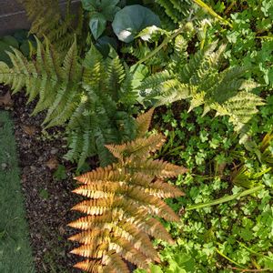 【シダの日】 初めての参加です☺️ 庭スミッコの日陰です 昨年??山で拾って来たシダ😅 大きくなってます 色づいているのは 紅葉ではなく新しい葉っぱです ココは葉っぱの密集地 その中で一番元気が良いです👍✨💕