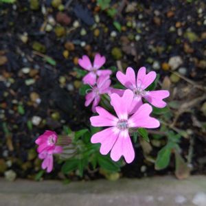 山の道端にピンクの花が2輪👀 イノシシに踏み潰されそうな気がして今は家に😂 花数が増えて成長しています。 早く大きくな〜れ😍 素朴に健気にひっそり咲く花 いいね(≧∇≦)b💞