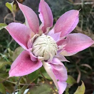タカネハンショウヅル ベバエンセラ系 秋咲き Clematis lasiandra (ラジアンドラ) タグには'秋咲き'と 地味な花